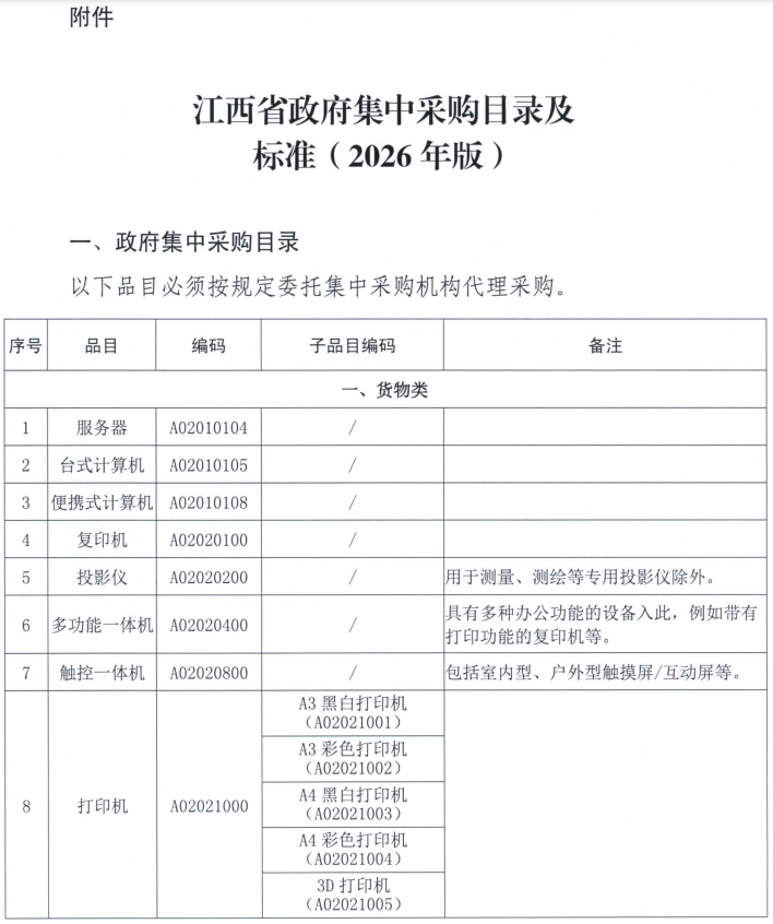 江西省財政廳關(guān)于印發(fā)《江西省政府集中采購目錄及標準(2026年版)》的通知