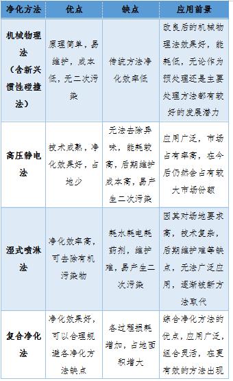 表3 主要油煙凈化方法比較的抽進(jìn)排出,或經(jīng)過(guò)濾網(wǎng)掛一點(diǎn)油,結果是:抽進(jìn)油煙,機內充滿(mǎn)油煙和灰塵,吐出油煙。油煙凈化設備則配備有凈化裝置:凈化板,進(jìn)行絕大部分油煙分離。離心風(fēng)機,濾化板殘余部分二次油煙分離。結果是:抽進(jìn)油煙,油、水和灰塵分離出來(lái),不被收集,機內不進(jìn)油煙和灰塵,吐出凈氣。
